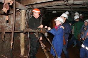 Am Samstagmorgen ging es nach einem ausgiebigen gemeinsamen Frühstück zu unserem Tagesausflug. Wir hatten den Röhrigschacht in Wettelrode in diesem Jahr als Ausflugsziel ausgesucht. Nach einer kurzen Fahrt sind wir in dem Erlebniszentrum Bergbau angekommen. Die erste Gruppe ist um 10.00 Uhr in den 283 Meter tiefen Schacht eingefahren. Die zweite folgte dann eine halbe Stunde später. Mit einer Grubenbahn ging es über 1000 m in ein Abbaufeld des 19. Jahrhunderts, wo anhand von Schauobjekten die Abbauentwicklung von den Anfängen bis zur Neuzeit vorgeführt und erläutert wurde. Das Betreiben verschiedener bergmännischer Druckluftgeräte veranschaulicht die enorme Belastung, welcher der Bergmann ausgesetzt war. Gegen 12.00 Uhr hatten beide Gruppen wieder das Tageslicht erblickt. Zum Mittagessen gab es in dem Bergbaumuseum leckere Nudeln mit Tomatensoße.
