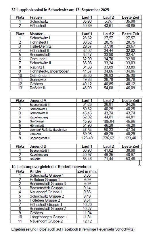 Warum heißt unser Pokallauf Luppholzpokal???????? Das Luppholz ist ein langgezogenes Wäldchen, das sich rund um Schochwitz erstreckt. Da dies typisch für unser Dörfchen ist, haben wir unseren Wettstreit danach benannt. Der Luppholzpokal ist jedes Jahr mit einem Dorffest für Schochwitz und Umgebung verbunden.